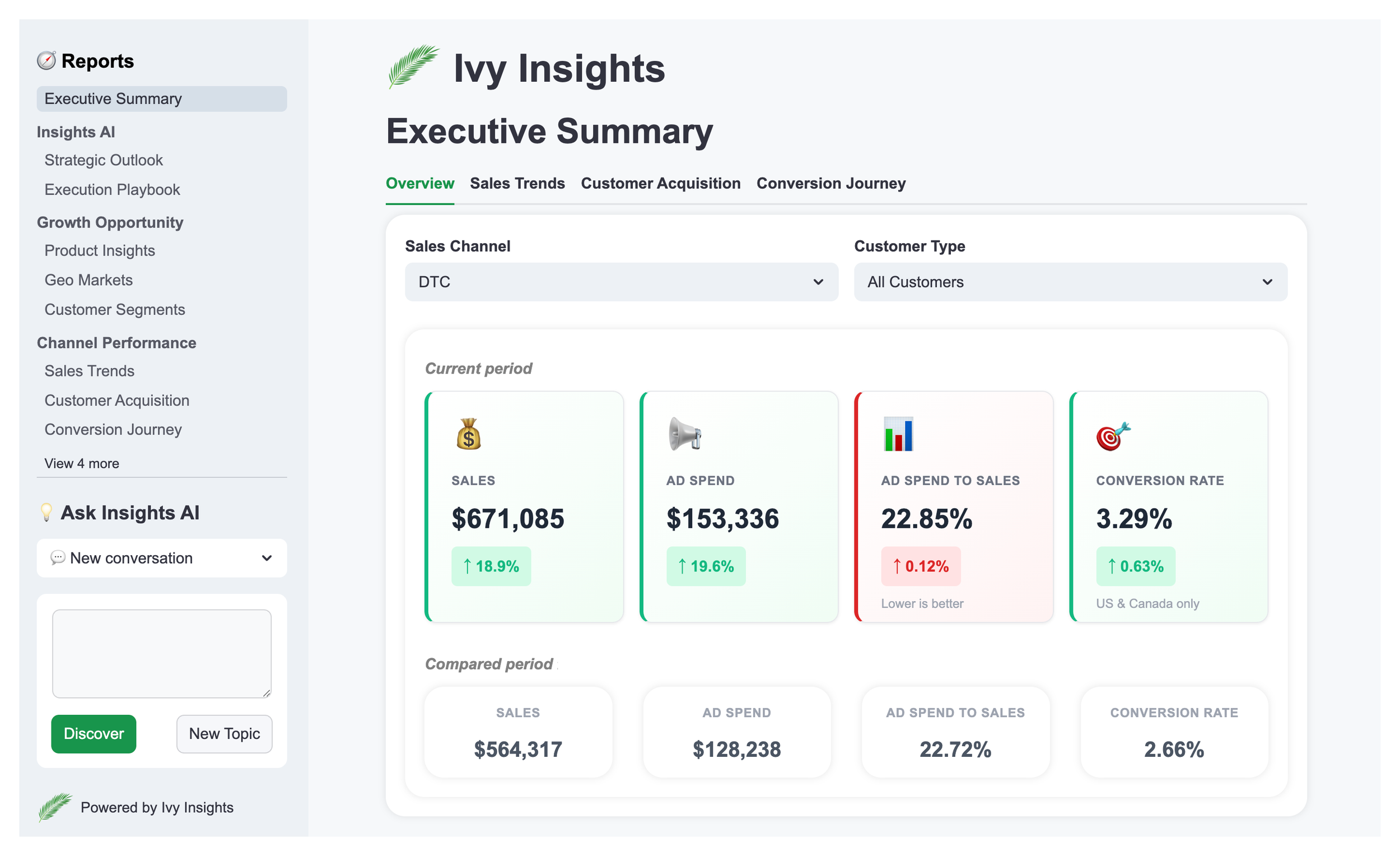 “Ivy Insights has reshaped how we plan and execute on customer acquisition. Their Insights AI was tuned to our specific business and consistently discovers growth opportunities our team had missed. We've seen sales climb more than 20% while customer acquisition costs come down.”